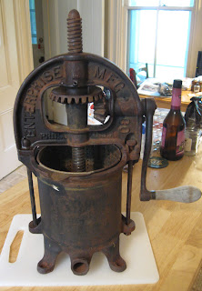 I have the same "apple press". My dad found it in my grandmother's garage and cleaned up for me. We went apple picking and pressed and pressed bushels of apples. It worked terribly as a cider press. Then someone told us that's because it is a sausage press. That made sense, too. I saw a similar one in an antique store that confused me further. The tag read, "apple/sausage press". Last night my Mennonite neighbor who is a dairy farmer walked in to my dining room, saw it and said, "Oh, I see you have a cheese press." All I could do was stand there laughing. I looked online and found the same identical model labeled as a cheese press. I sent my dad the link and he said that made sense but wondered how you would get the cheese out when you are done pressing it. I'm so glad he asked before I crammed a couple of pounds of cheese into it because I have no idea. I'm as confused as ever as to what my press may have been made for. Your apple tart looks great! I think I'll make one from the apples I just peeled to make ACV.